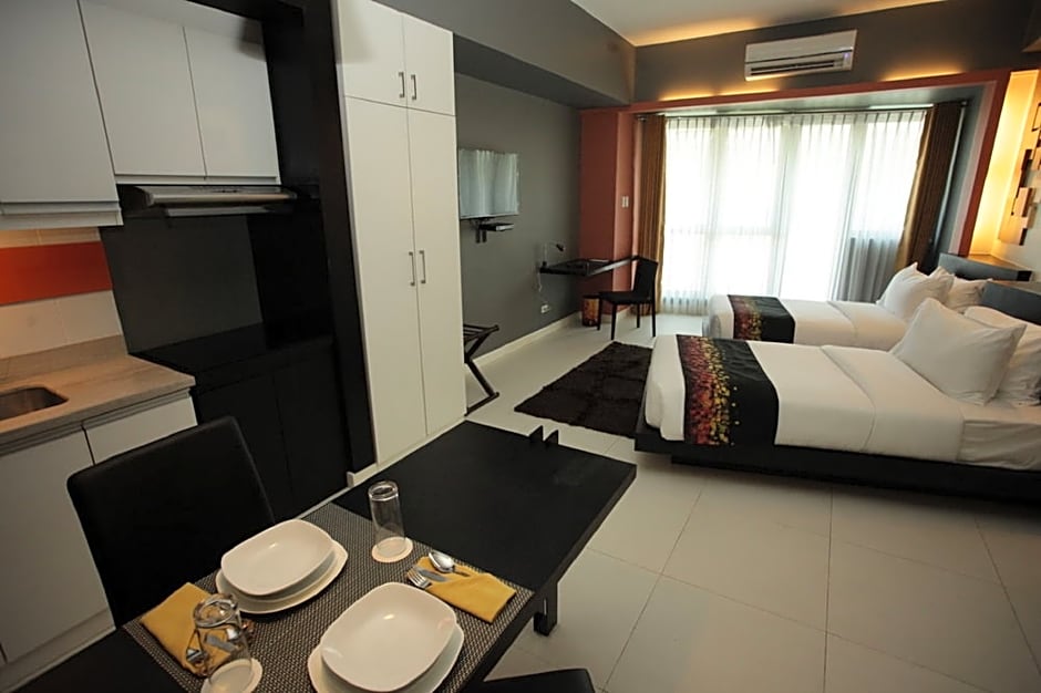 STUDIO EXECUTIVE is 484 square feet and includes a queen-size bed 150-154 width plus extra beds on demand, desk, cable tv, hairdryer, safe, and slippers and is Wheelchair-accessible.